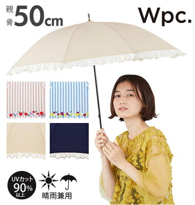 WPC 日傘 長傘 好評 遮光 遮熱 晴雨兼用 レディース UVカット 紫外線対策 UV対策 紫外線カット 50cm 8本骨 おしゃれ かわいい シンプル 無地 刺繍 フリル ストライプ フラワー 花 晴雨兼用傘 ラタン持ち手 籐 バンブー持ち手 竹 撥水 はっ水 防水加工 パラソル きれいめ