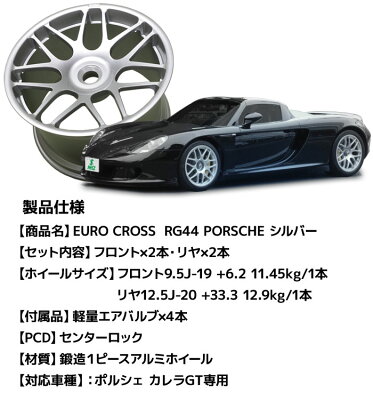 【4本セット】 ニーズ (NEEZ) 鍛造1ピースアルミホイール ユーロクロス EURO CROSS RG44 PORSCHE フロント9.5J-19 リヤ12.5J-20 センターロック シルバー カレラGT専用 新生活応援